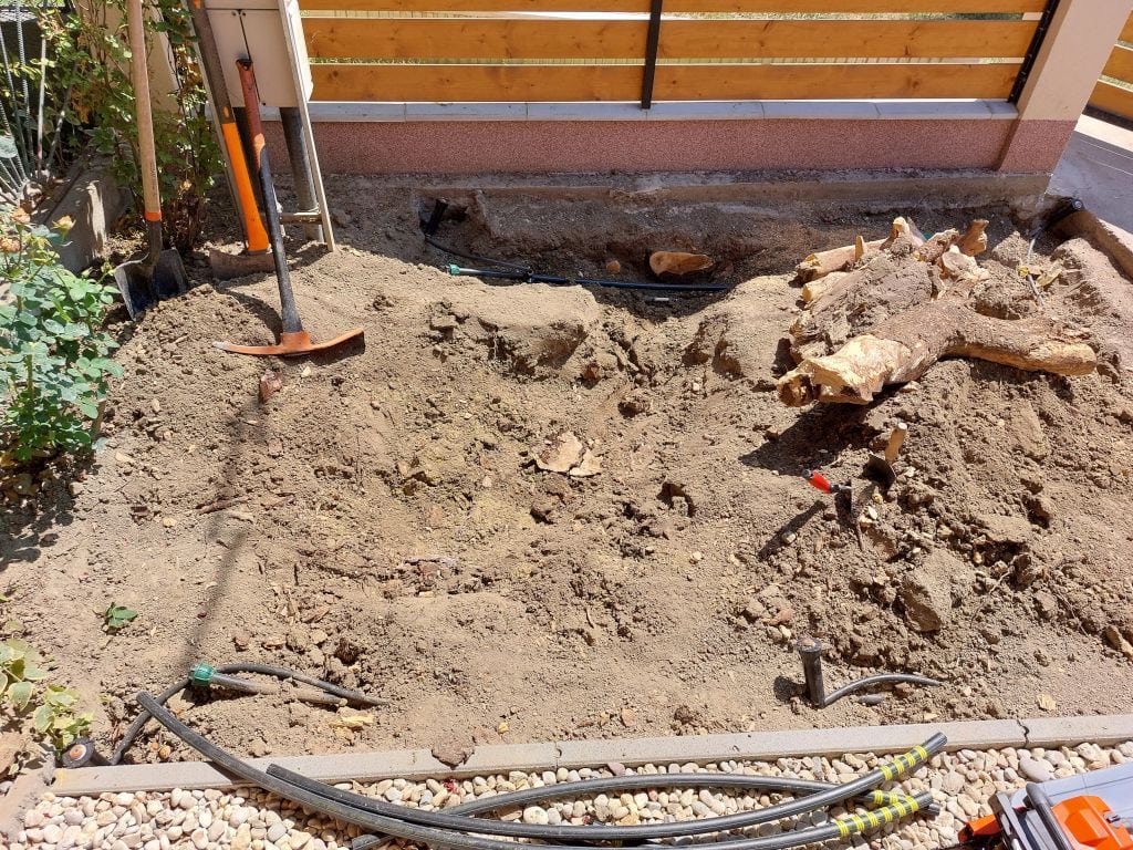 Az a bizonyos kubikosmunka: Az öntözőfejek helyének kitűzése után az öntözőrendszer helyének kialakítása